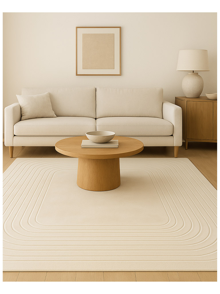 Tappeto Linea Pura Semplicità che arreda Il tappeto Linea Pura è l’essenza del design moderno: linee pulite, toni neutri e una geometria morbida che accarezza lo spazio con discrezione ed eleganza. Il suo disegno a cornici concentriche con angoli arrotondati crea un effetto tridimensionale delicato, perfetto per aggiungere profondità senza appesantire l’ambiente.DettagliMIS:250 X170 CMMateriale :bambo silkOrigine : Indo tibetFabbricazione : fatto a mano Consegna stimata in 8/9 settimane possibilta ordinabile su misura 240 × 170 –   250 × 200 – 300 × 200 – 300 × 250 – 400×300 ,,,, cm
