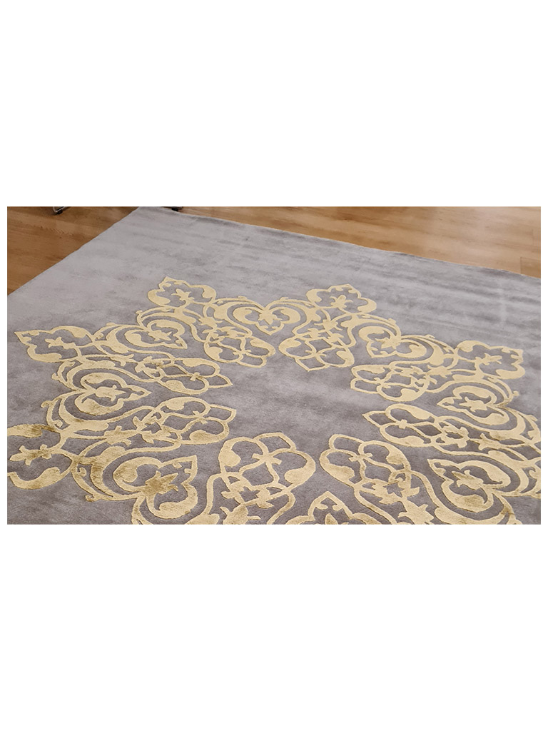 Tappeto contemporaneo sole di alta qualità lavorato con fondo lana il designo seta viscosa molto pregiata annodato a mano tagliato a rilievo molto raffinato e prezioso Design: Golnaz Salehi Dettagli Misto cotone/lana/seta viscosa MIS:210 X260 CM Materiale : Materiale Utilizzato Lana Pregiata Naturale e seta viscosa di alta qualità Origine : Indo tibet Fabbricazione : Annodato a mano Disponibile possibilità chiedere più informazioni e foto