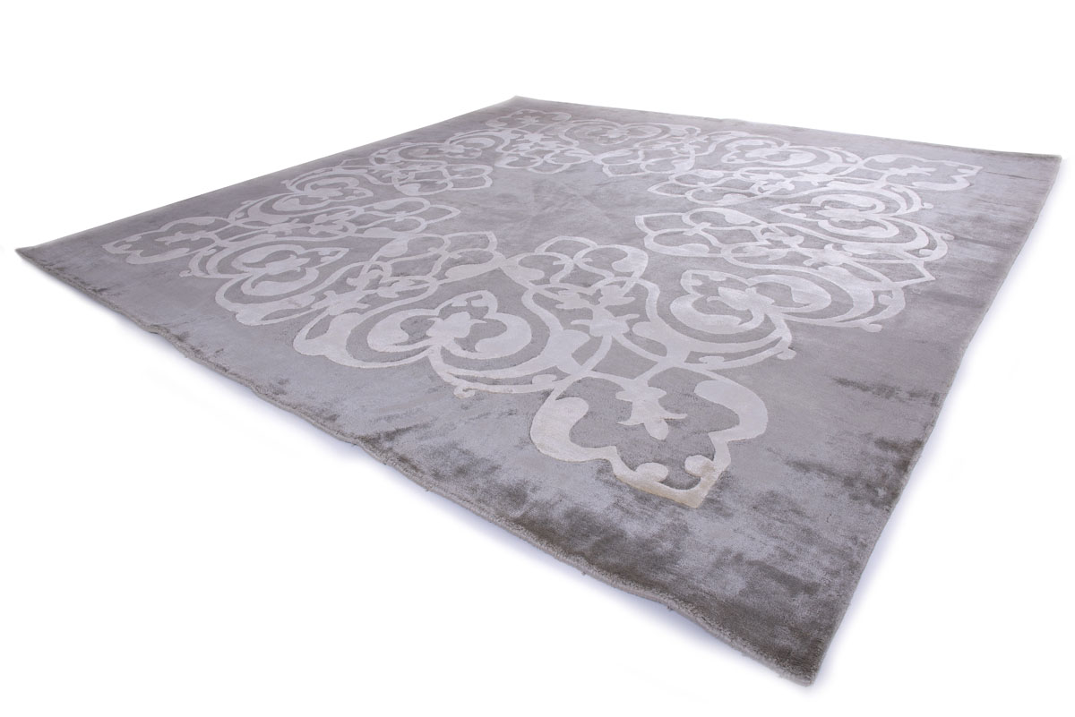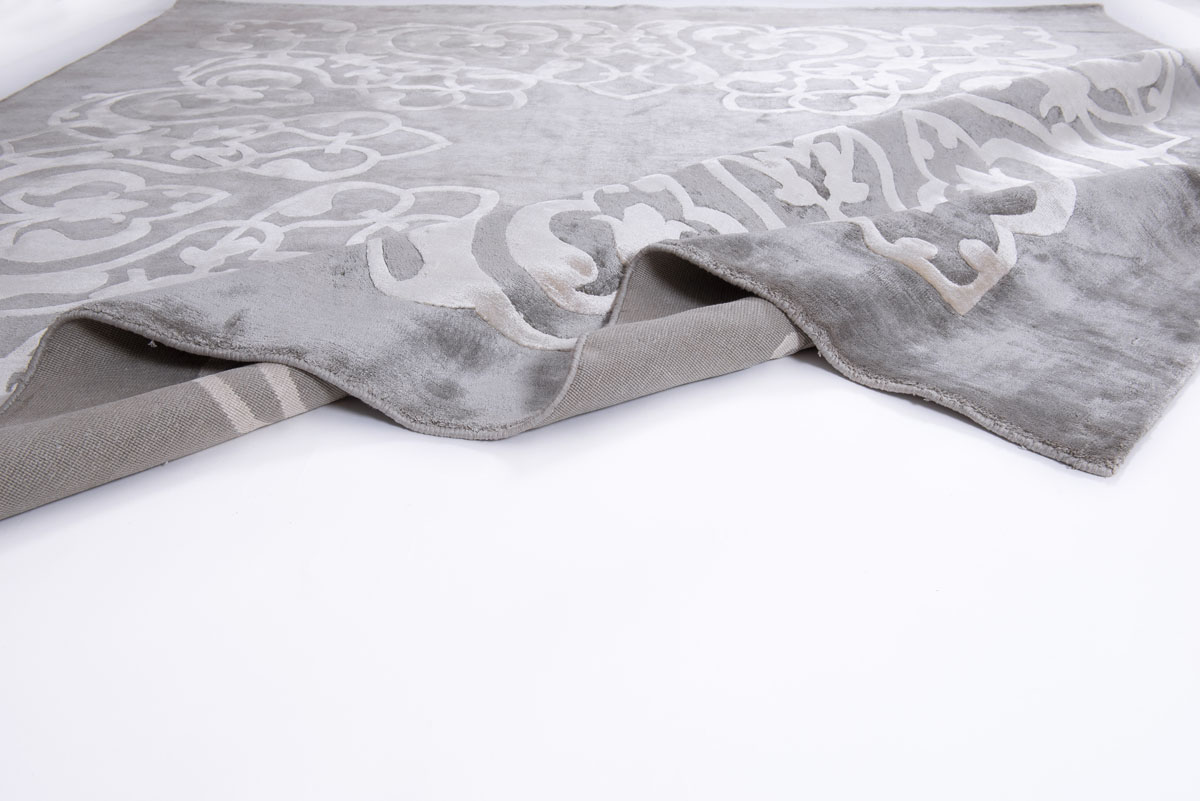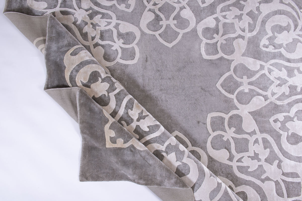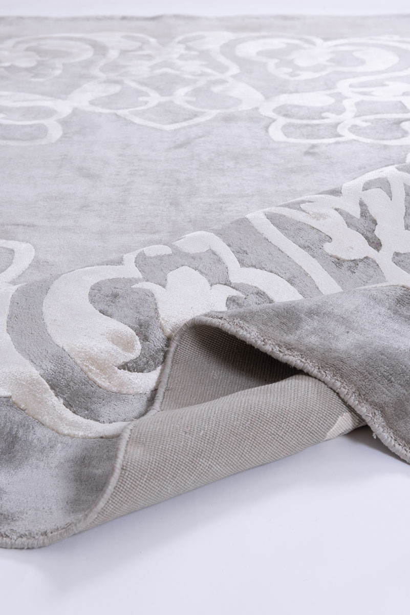 Ispirato all’eleganza dei motivi persiani classici, il tappeto Toranj unisce tradizione e modernità in una composizione armoniosa e ricercata. Il fondo grigio perla, morbido e luminoso, accoglie un raffinato disegno ornamentale in rilievo, realizzato con delicate tonalità cipria che creano un elegante contrasto ton sur ton.