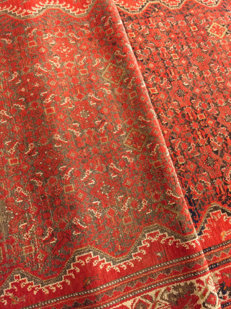 una città moderna situata 80 km da Hamadan nel cuore di una ricca zona rurale celebre per i suoi vigneti. Nella campagna circostante si trovano numerosi villaggi impegnati nella produzione di tappeti, che poi riversano sul mercato urbano. Malayer ha legato il proprio nome alla vasta produzione di questa area, nell’ambito della quale è possibile distinguere 2 livelli produttivi. I villaggi ad ovest ed a nord di Malayer sono più legati alla tradizione Curda: annodano quindi i tappeti con una decorazione di motivi classici herati, in rosso su fondo blu. I villaggi a sud-est di Malayer decorano i propri tappeti con medaglioni floreali. I colori tradizionali sono rosso, arancio, blu e crema. le dimensioni sono estremamente varie; si riscontra un’abbondante produzione di passatoie.Caratteristiche di questo tappeto sono: La straordinaria morbidezza